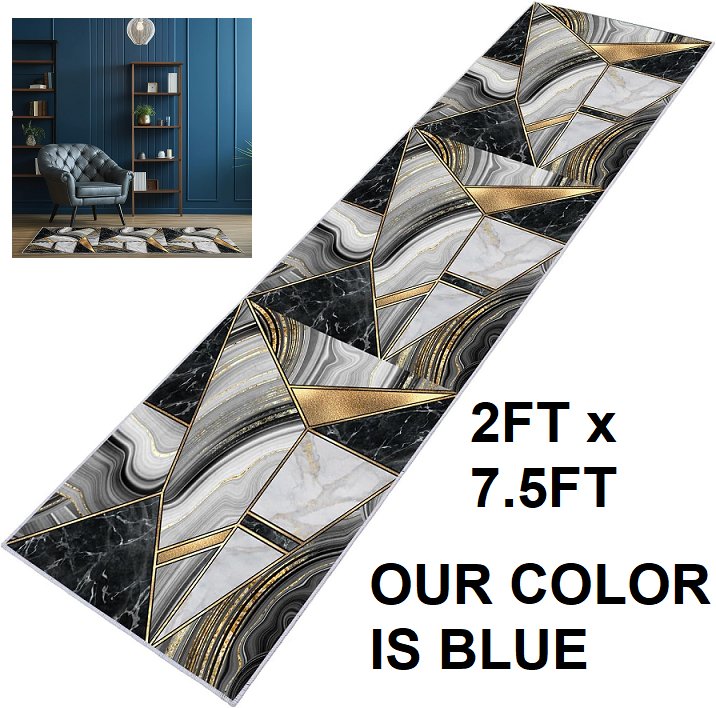 Non slip geometric runner rug for hallway or entry way - 2ft x 7.5ft - multi color