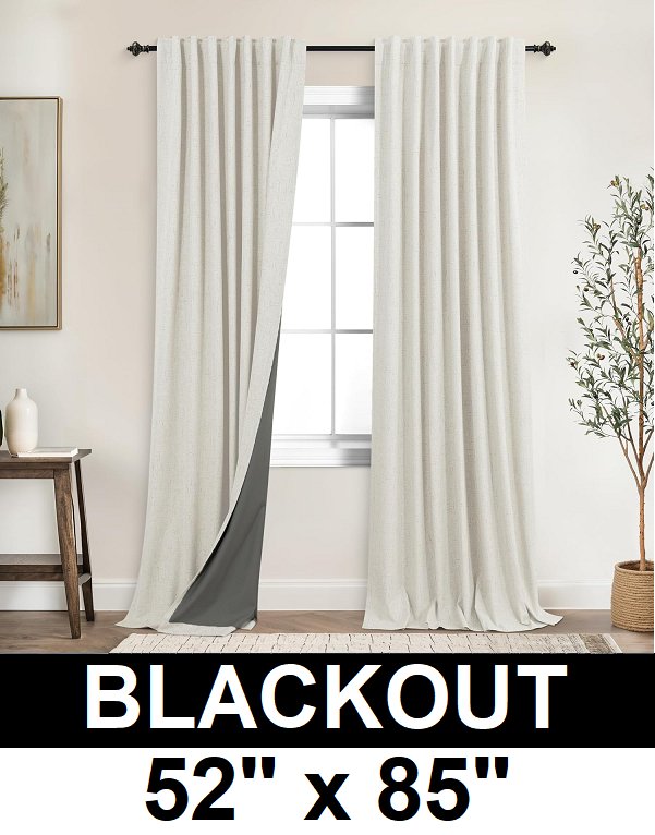 (2 panel) koufall back tab blackout linen curtains - 52" x 85" - Cream Beige