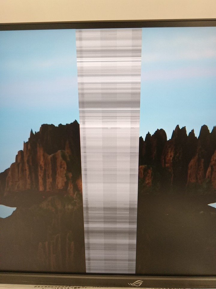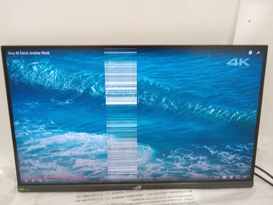 **Please note that this monitor has an issue, there is a graphical issue in the center of the screen, where a 5-inch vertical band of multiple lines appears and flickers continuously.** There are scratch marks on the back side of the monitor near the mounting placement area. Tested for power. (Please see photos) *GENERIC CONDITION STATEMENT* All TV's and monitors should be inspected at our facility before leaving. We will strongly urge you to ask our staff for assistance in checking the condition of your display during pick up. This is done for customer peace of mind and for warranty purposes. If you refuse the on-site inspection, then any damage to the display, screen or physical damage done by transportation or handling will void our warranty/refund (issues not caused by transport/handling will still be covered; for example, an issue with volume control or WiFi connectivity).