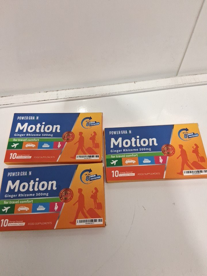 3( 10 CHEWS) POWER GRAIN MOTION GINGER RHIZOME FOR TRAVEL COMFORT - 500MG EACH - ORANGE FLAVOUR