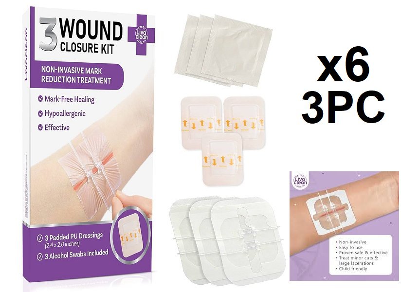 6(3PC) LIVA CLEAN WOUND CLOSURE KIT NON INVASIVE MARK REDUCTION TREATMENT