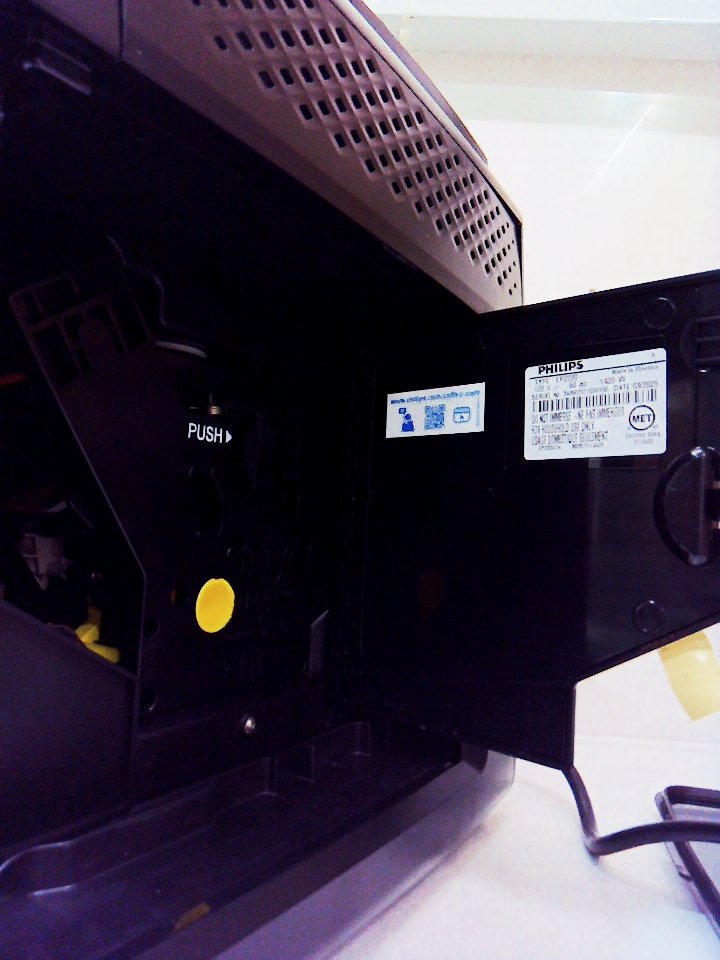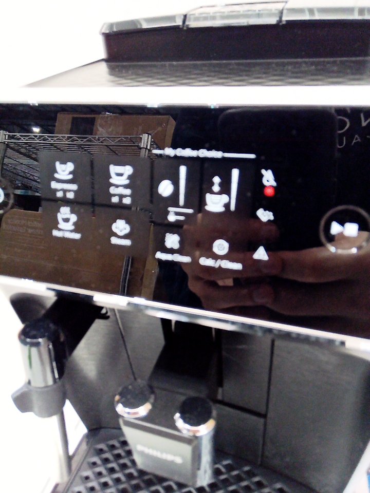 There are coffee beans in the top compartment and light markings/scratches on the sides. Tested for power. (SEE PHOTOS)