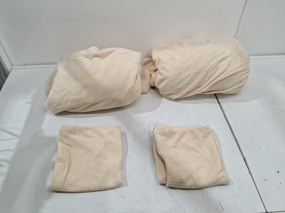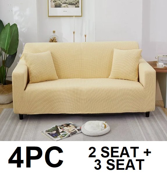 4pc elastic stretchy waffle sofa couch cover set with 2 pillow covers - 2 seat + 3 seat - 16" x 16" pillow covers - butter yellow