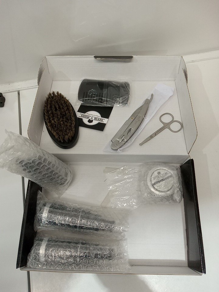 grow a beard beard straightener grooming kit - beard wash/brush/comb/growth oil/chanel balm/conditioner/razor/ scissors - black - (model: 108)
