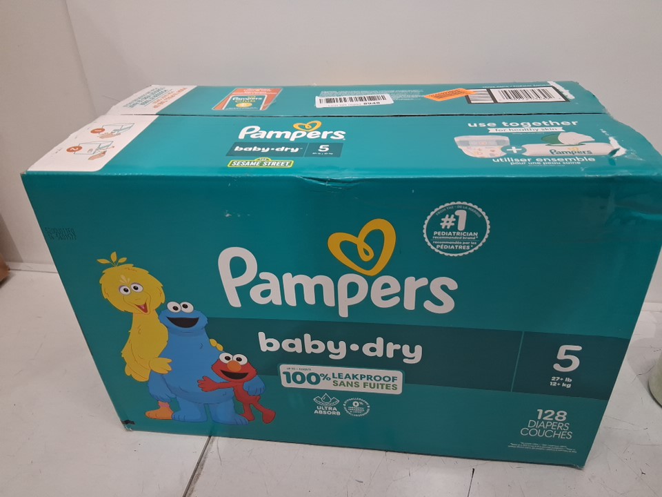 128PK PAMPERS BABY-DRY DISPOSABLE DIAPERS - SIZE 5 - 27+ LBS - SESAME STREET