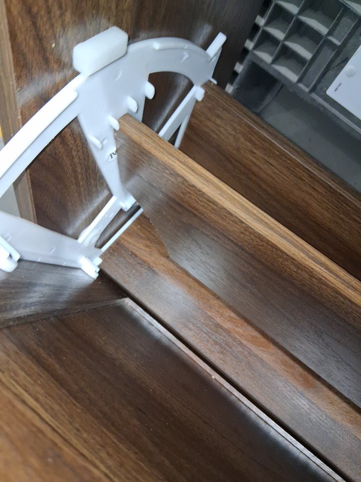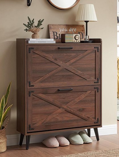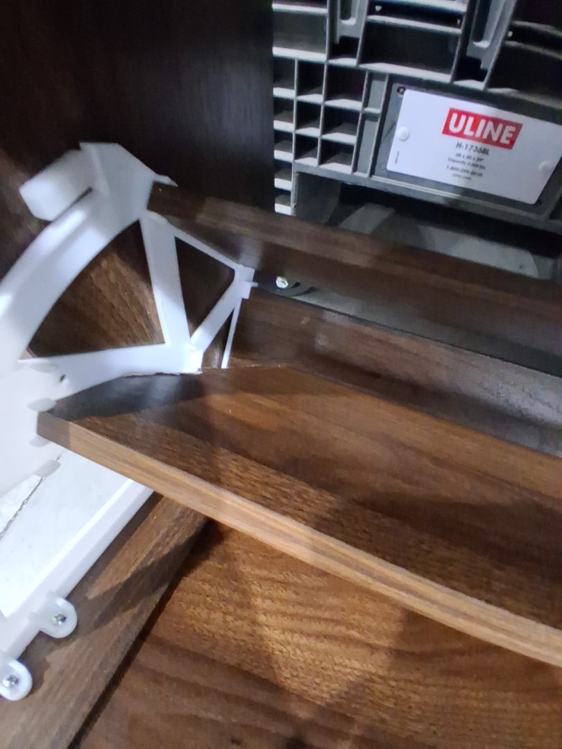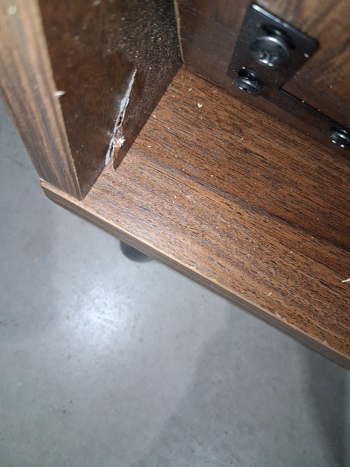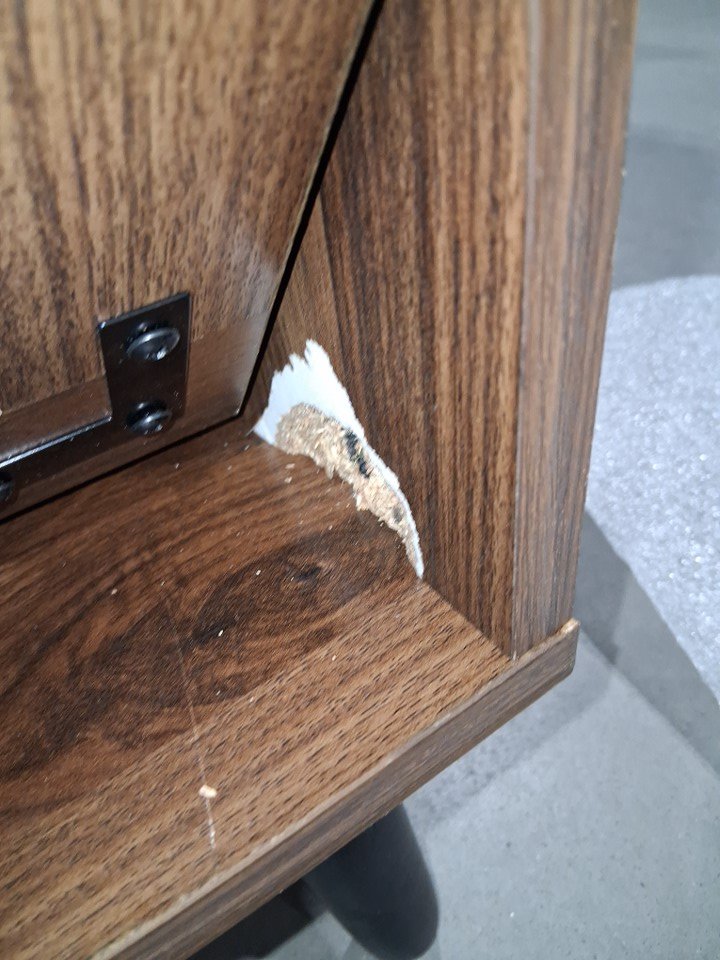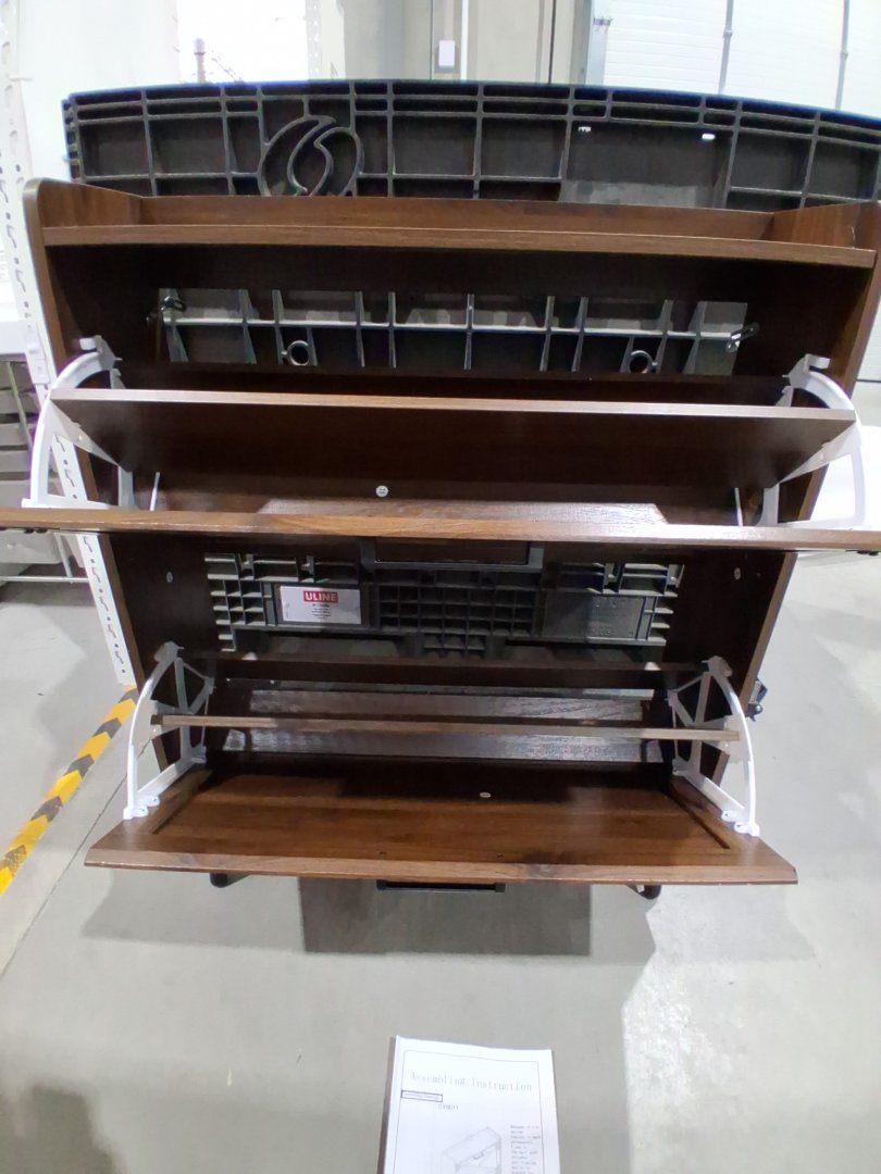 Shoe shelf has a broken shelf for the inside, chipped marking on the bottom and inside please see photos for more details.