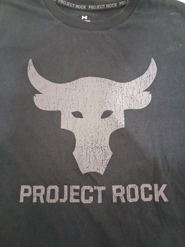 small amount of hair on shirt, logo is sightly worn, please see photo