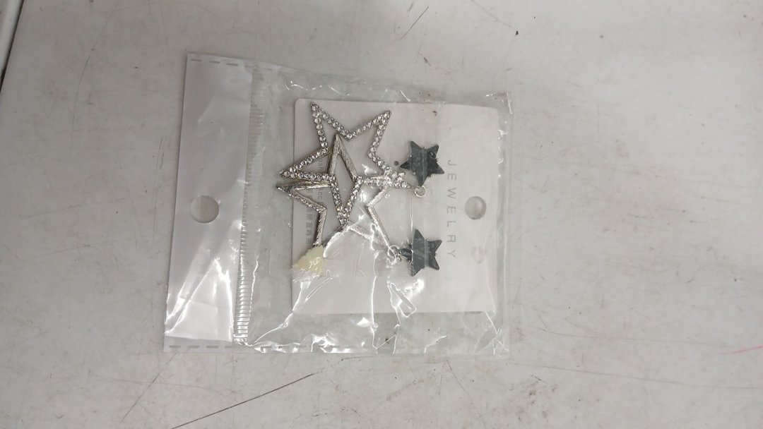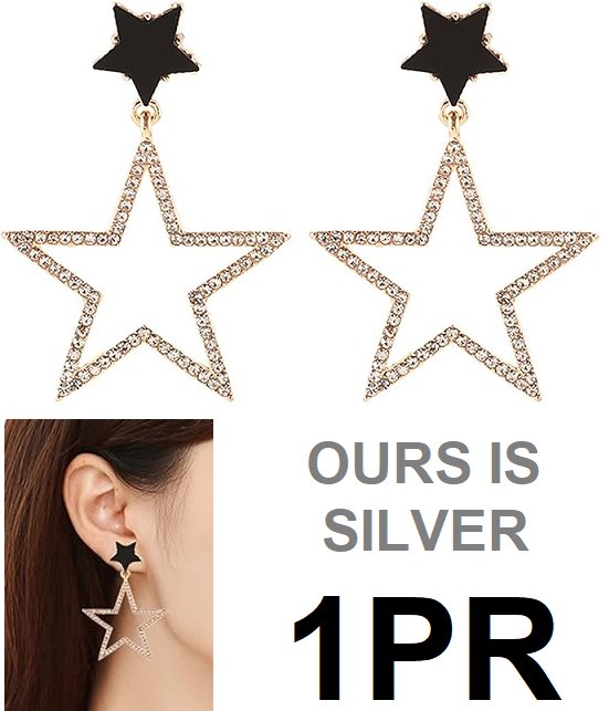 1PR NORLSO DANGLE CUBIC ZIRCONIA DECORATIVE SHIMMER STAR EARRINGS - SILVER/BLACK