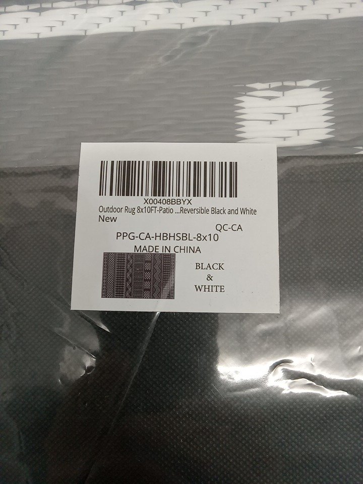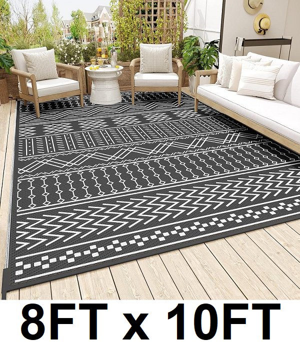 AMOAMI Outdoor waterproof reversible BOHO Patio Rug with Fade-resistant technology - 8ft x 10ft - black/white (MODEL: ppg-ca-hbhsbl-8x10)