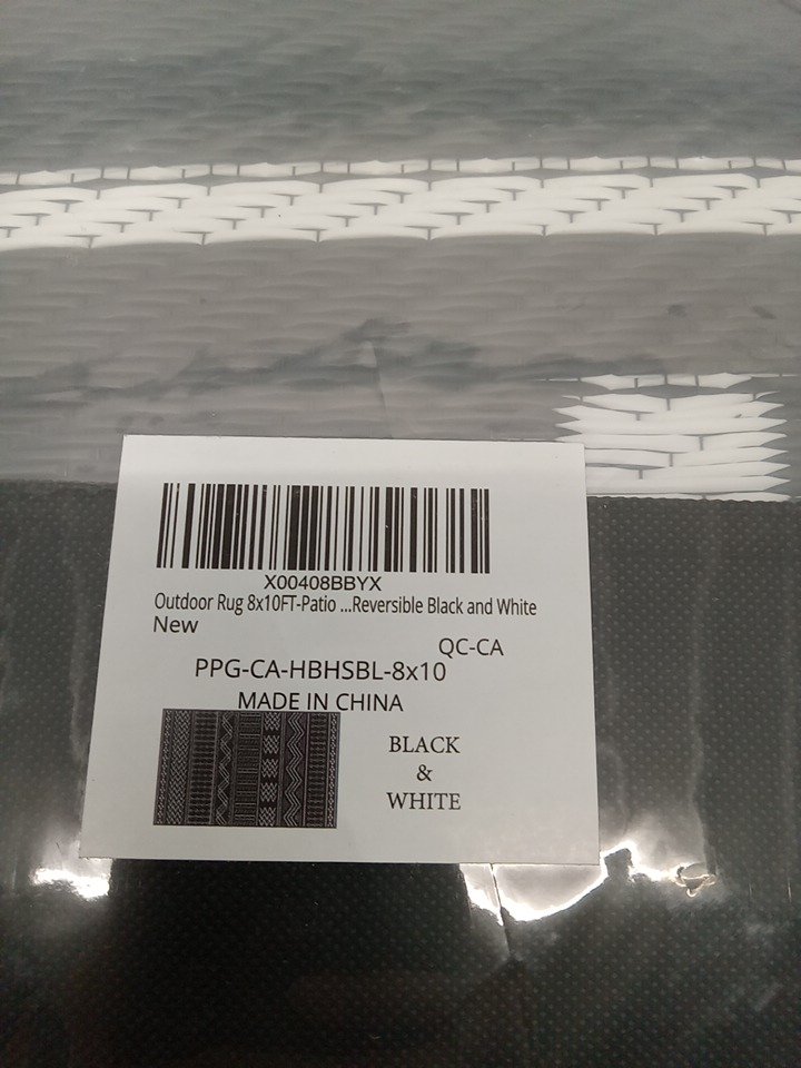 AMOAMI Outdoor waterproof reversible BOHO Patio Rug with Fade-resistant technology - 8ft x 10ft - black/white (MODEL: ppg-ca-hbhsbl-8x10)