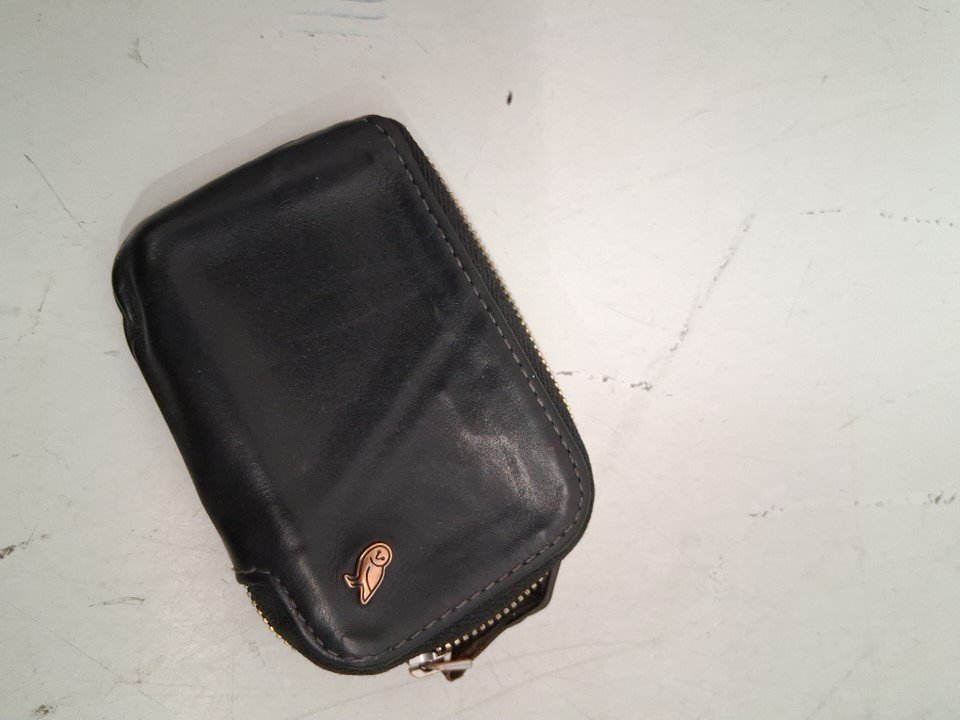 the logo is slightly fading and the zipper handle has minor marks/scratches from previous use
