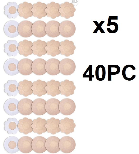 5(40PC) WOMENS SLIM LEMON NIPPLE COVERS, BREAT PETALS WITH PASTIES AND ROUND - BEIGE