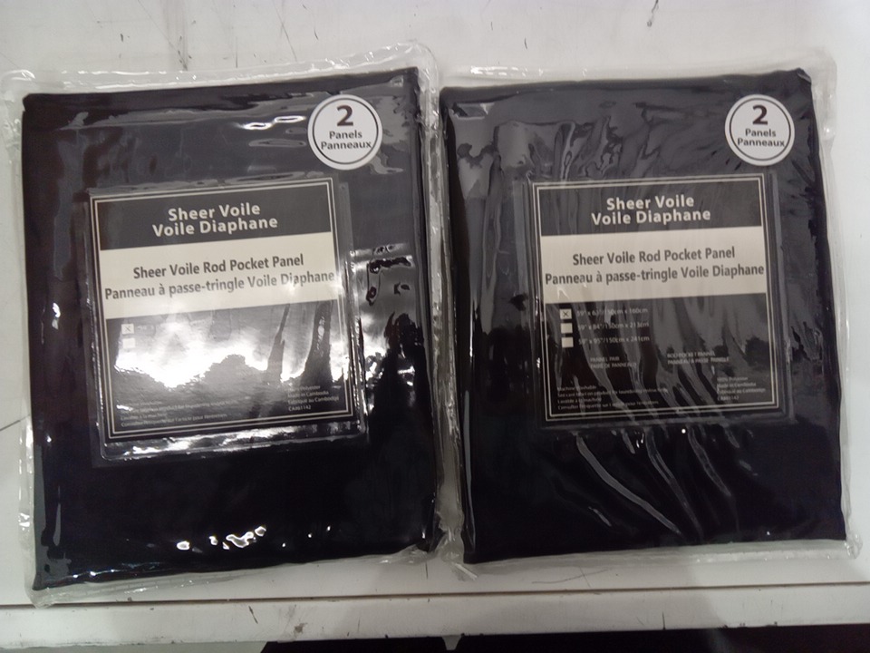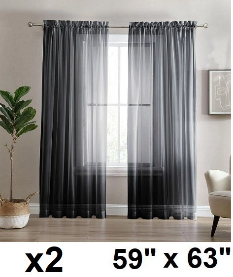 2 (2 Panel) Voile Sheer Rod Pocket Curtains for windows - 59" x 63" - black (style: 108885) - (4 Panels Total)