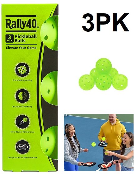 3pk rally40 pickleball balls - USAPA standard - green