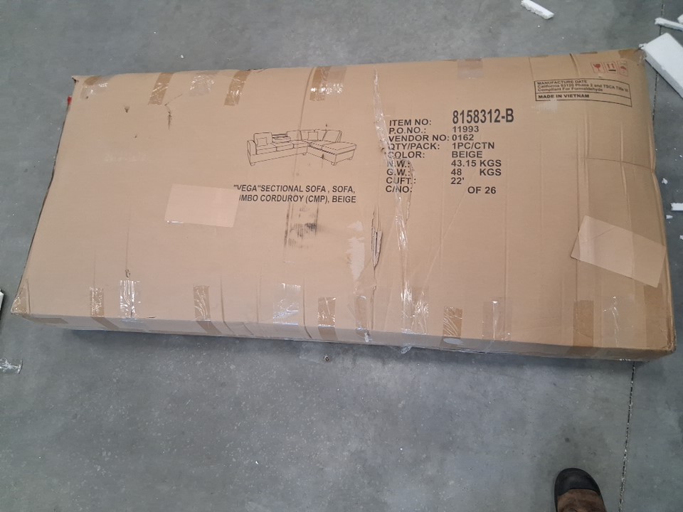 Bella Furniture Vega Sofa Jumbo LEFT SOFA ONLY - Beige/corduroy (Model: 8143612-b)