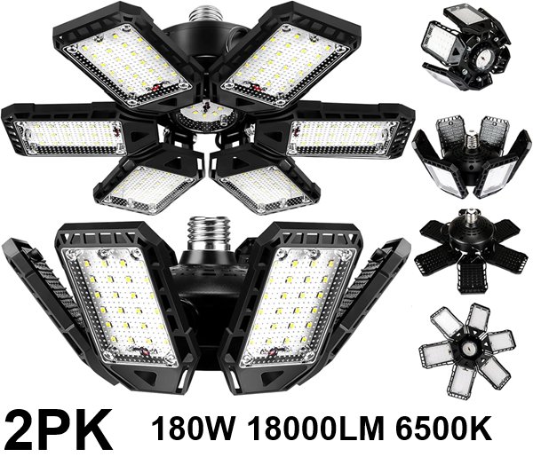 2PK LED Lights Bulb with Deformable Panels - 180W 18000LM 6500K - BLACK