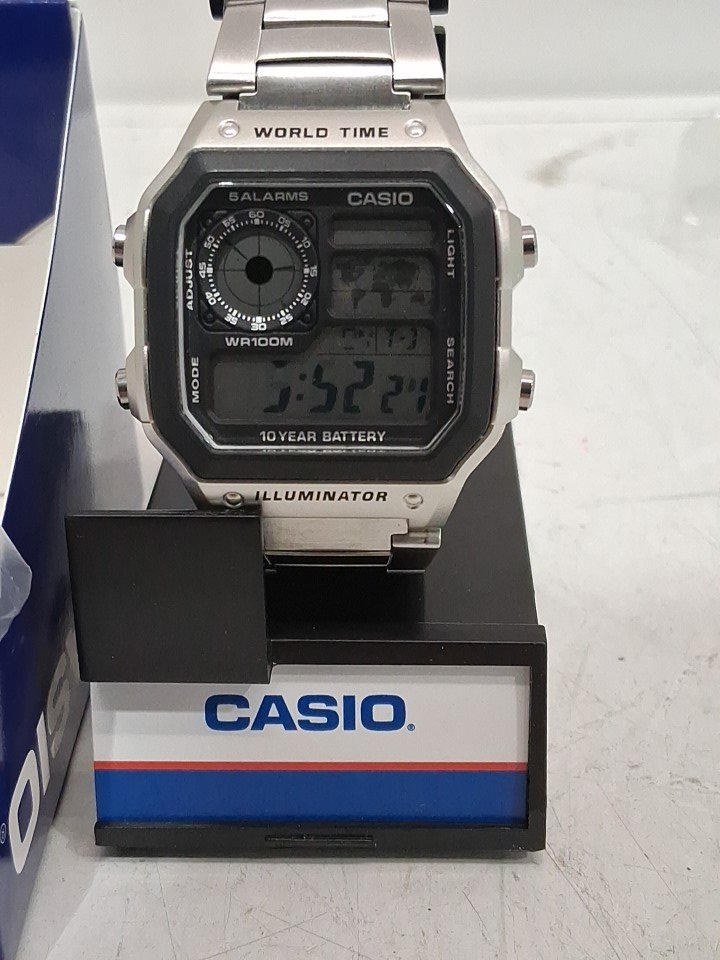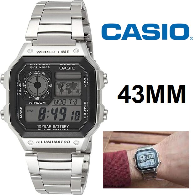 MEN'S CASIO STAINLESS STEEL DIGITAL DISPLAY BRACELET WATCH - 43MM - SILVER - (AE-1200WHD-1AVCF)