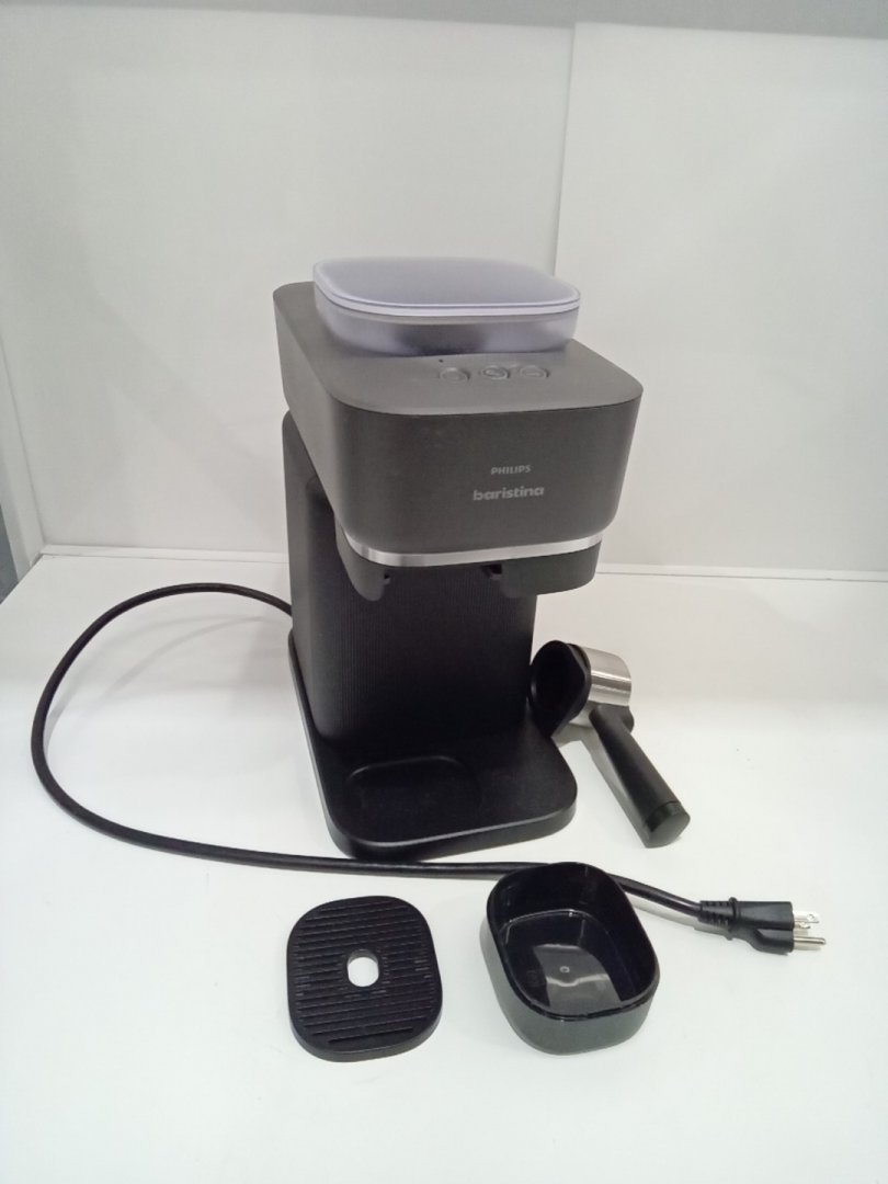The top part in the grinder appears to be loose, and may require further maintenance before using. Tested for basic power only. Residual grinds from prior use.