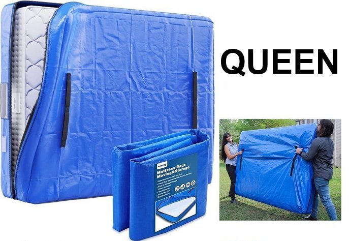 protective mattress bag WITH HANDLES for moving and storage - queen size - blue