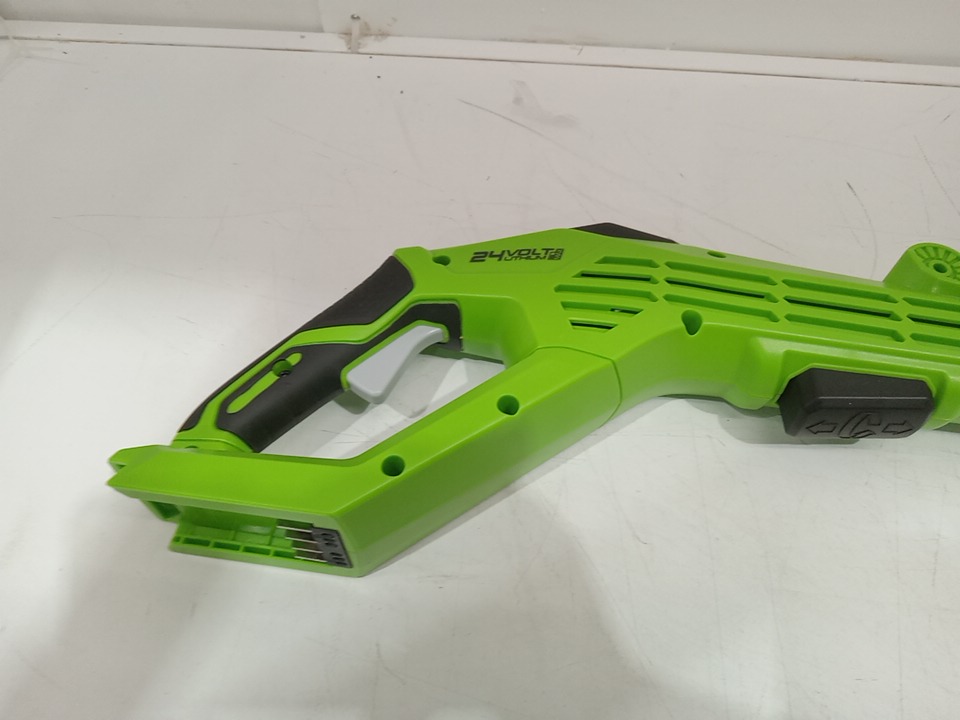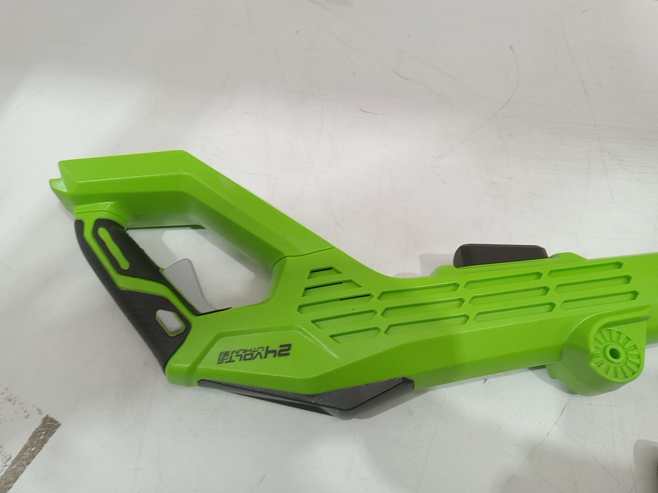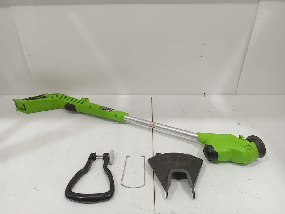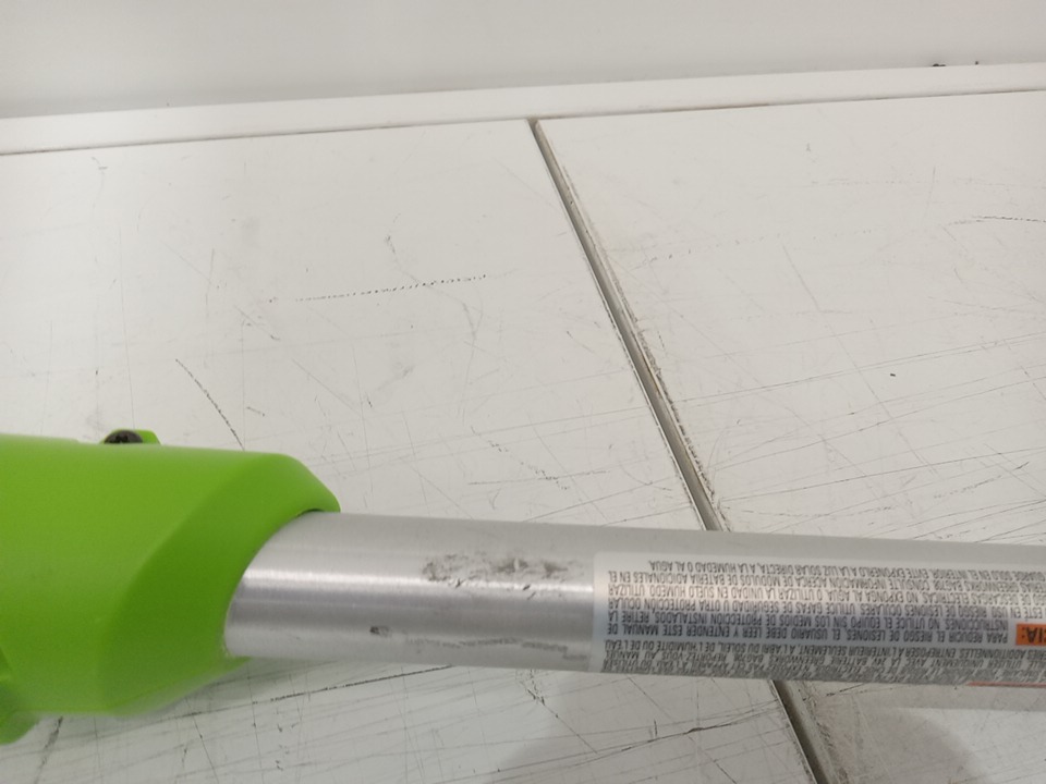 Please note that the string trimmer, the charger and the battery are missing from the original packaging. There are dirt residue on the cover pad and there are scratch marks on the extension rod. Tested for power and motor function with the battery we has in our warehouse. (Please see photos)