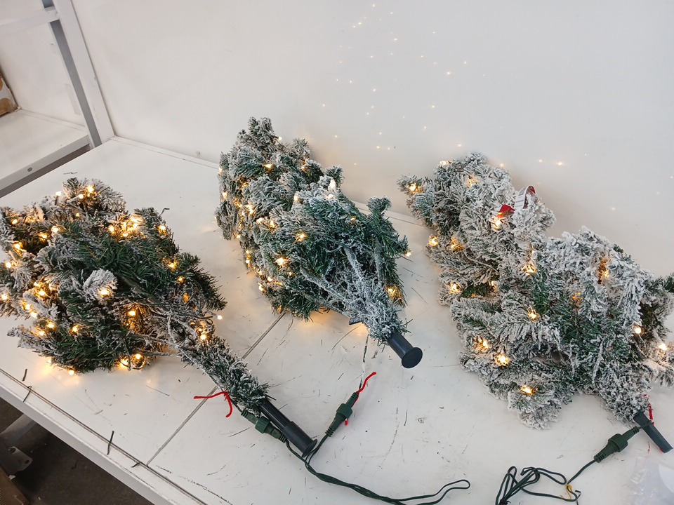 Costway Pre-Lit Snow Flocked Artificial Pencil Christmas Pine Tree With stand & 250 Led Lights- 6FT- green/white (model: CM22875US)