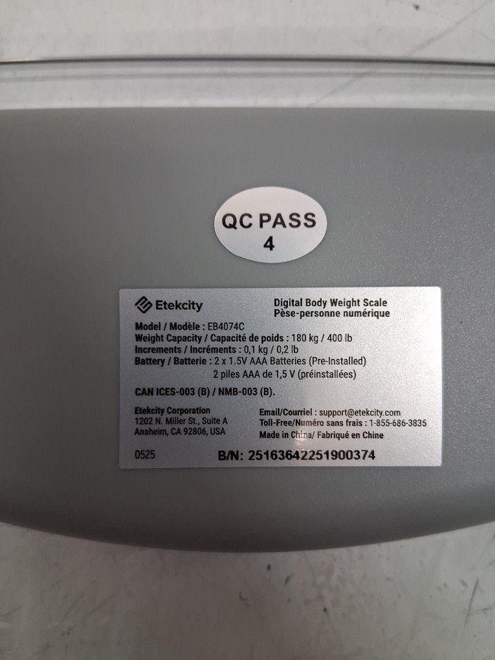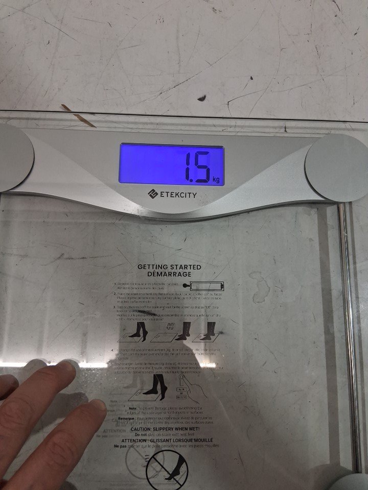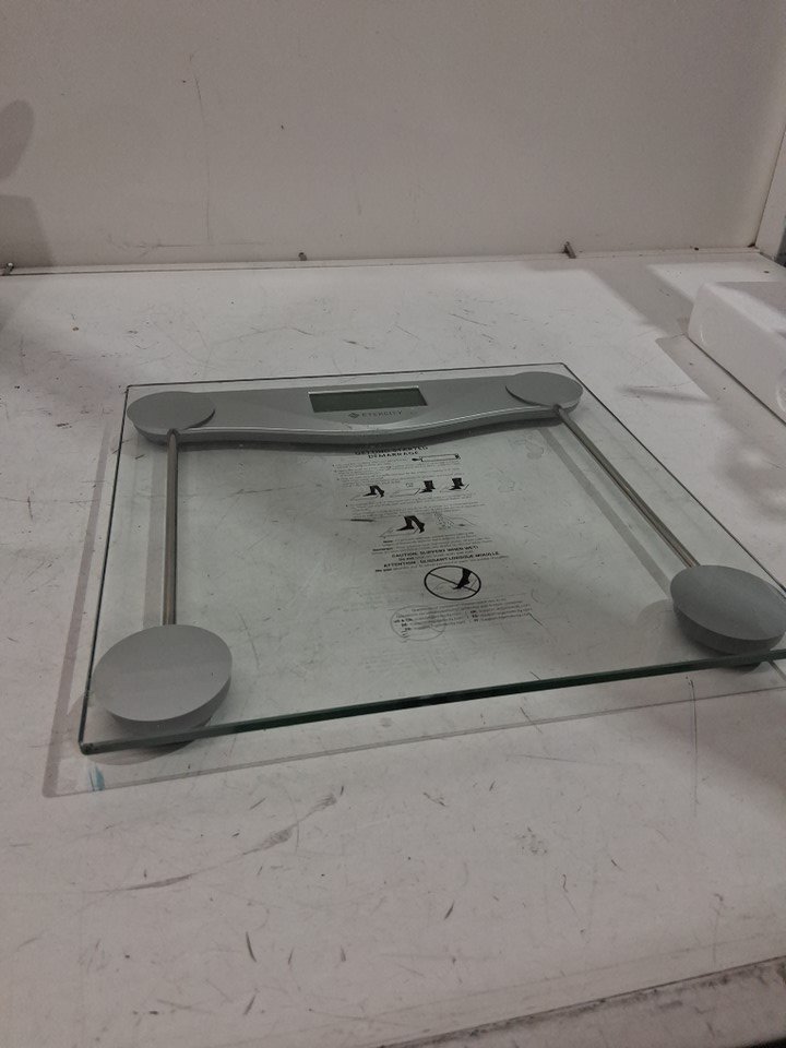 Some noticeable staining on the glass near where the weight is displayed. Product was tested for power and function.