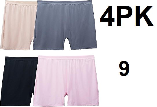 4PK WOMENS FRUIT OF THE LOOM MICROFIBER SLIP SHORT BOXER PANTIES - SIZE 9 - assorted colours