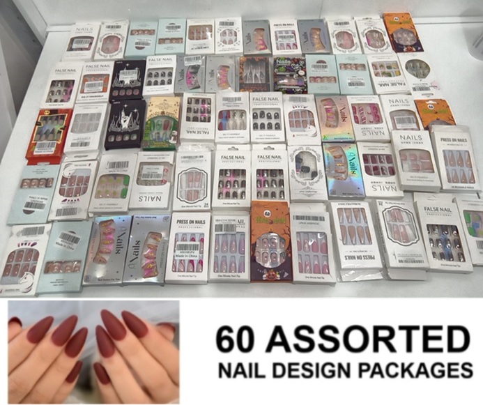 60 assorted nail design packages - assorted brands , shapes & designs