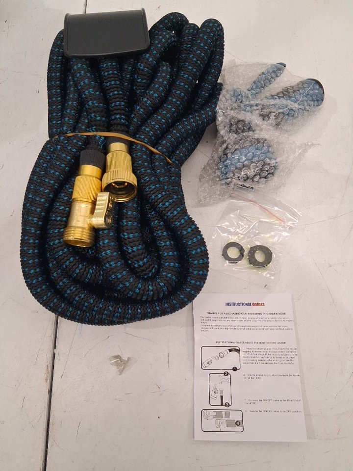 HBLIFE EXPANDABLE FLEXIBLE LIGHTWEIGHT GARDEN WATER HOSE WITH 9 FUNCTION NOZZLE SPRAYER - 3/4" SOLID BRASS FITTING 100FT - BLACK/BLUE