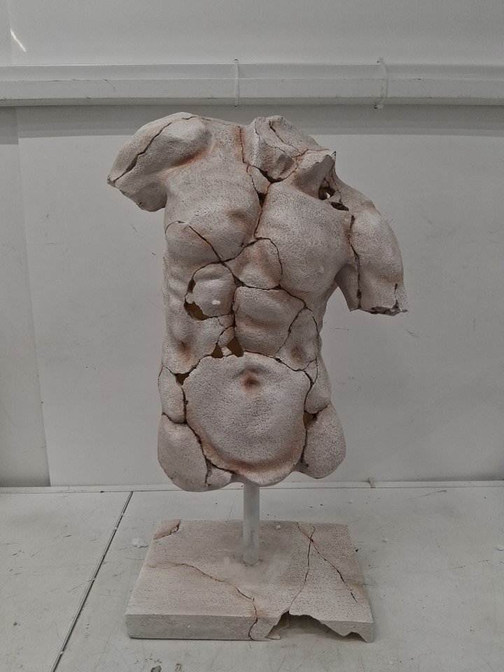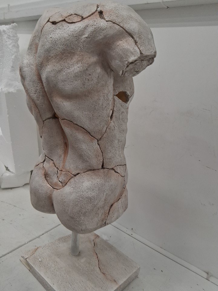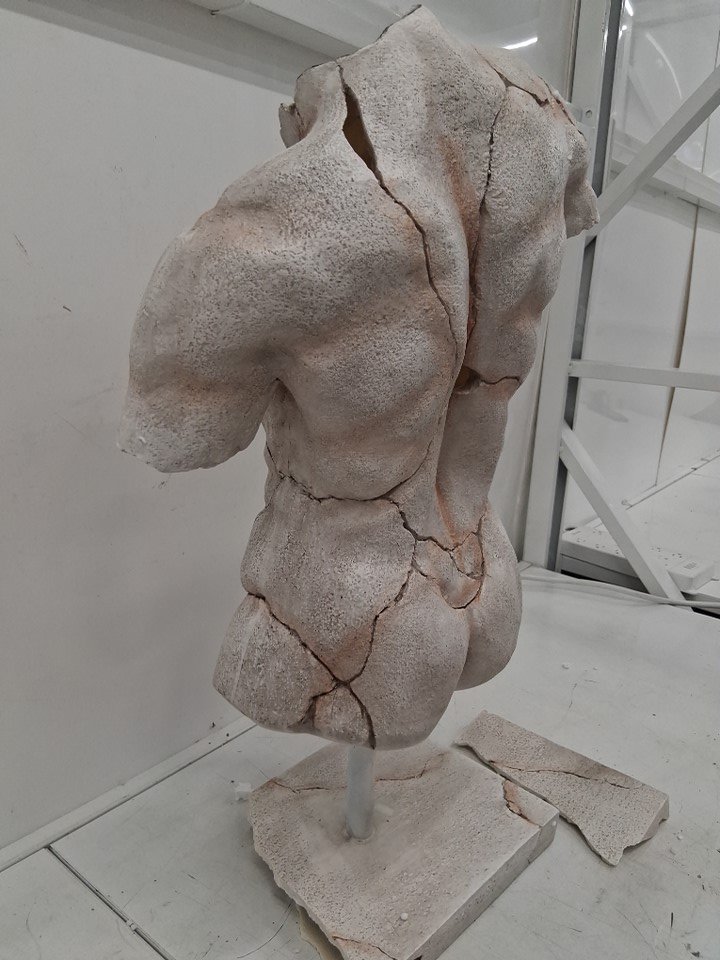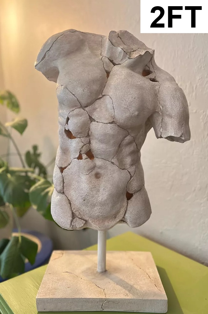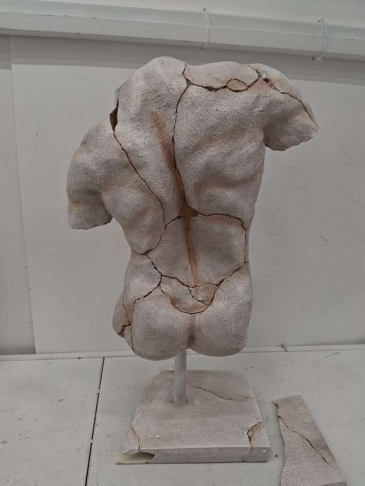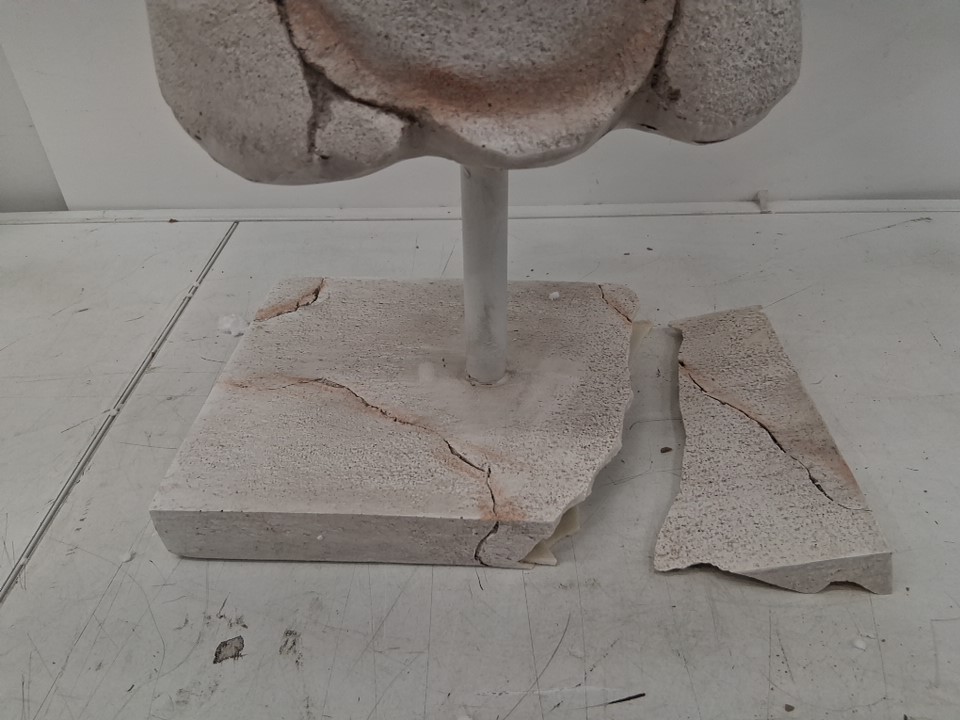 Please See Photos: - The item is intentionally cracked by design, however there is an actual part of the base that is broken/cracked. - The broken part is included with the item and can be glued to the base.