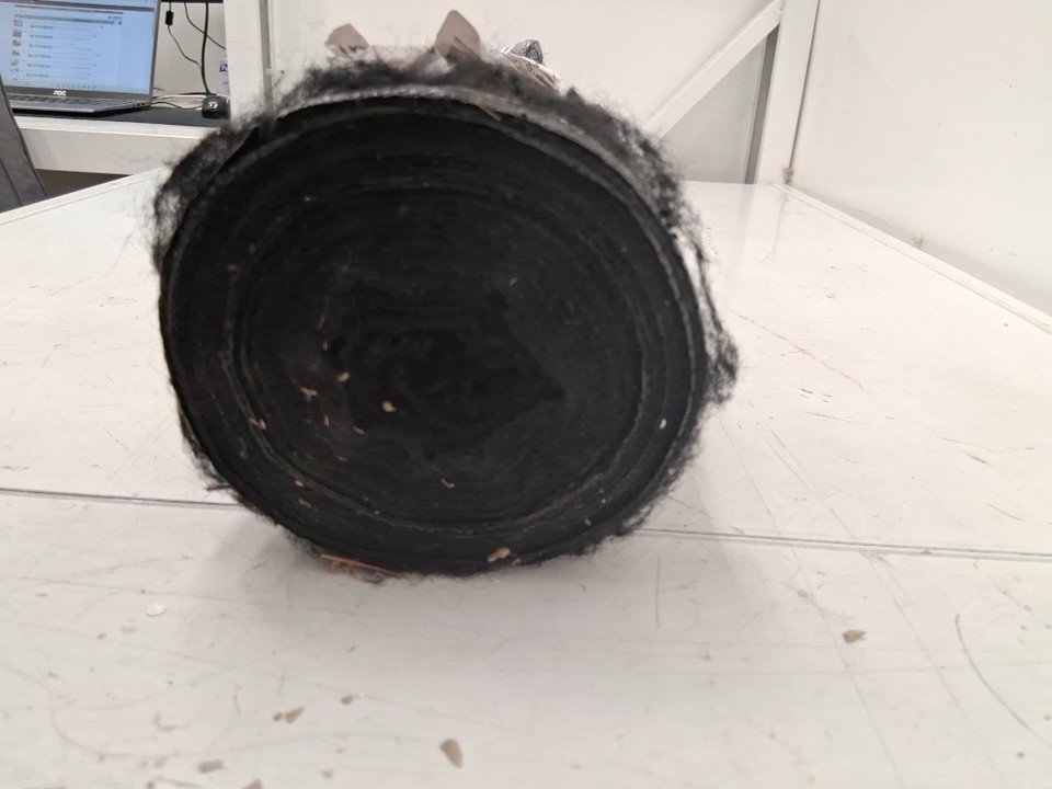 Please See Photos: - The item appears to be complete and new despite the packaging condition. - The layer of cloth that is exposed has minor spots where it appears it has been stretched presumably due to packaging/freight - however this should not affect function or the result after product has been installed.