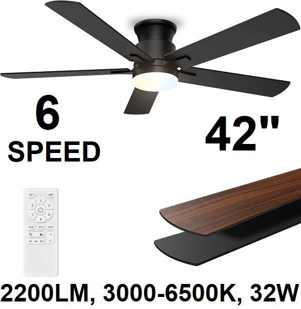 ALLSMARTLIFE Low Profile FLUSH MOUNT Hugger Ceiling Fan WITH REMOTE - 42" - black/brown