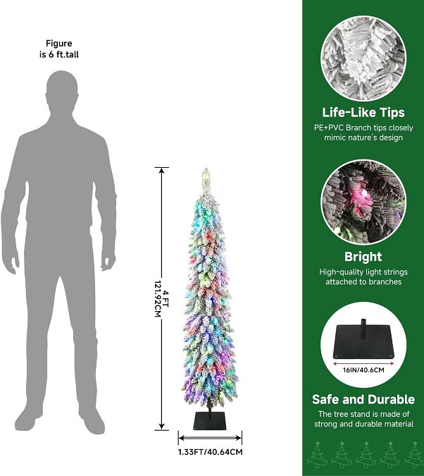 alupssuc snow flocked pre-lit pencil christmas tree with remote control for rgb lights - 4ft