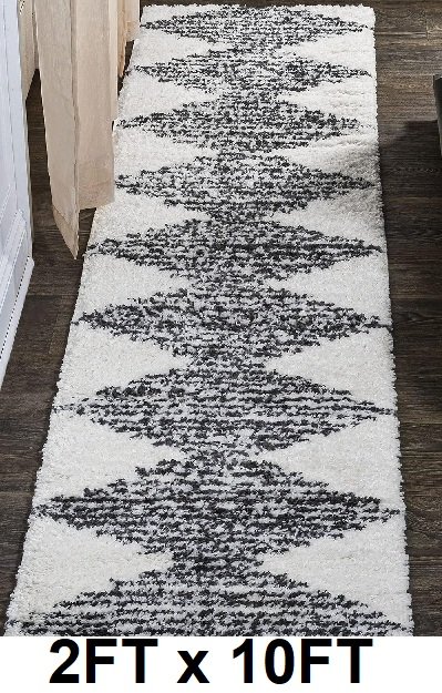 jonathan y elm diamond stripe geometric bohemian mykonos shag runner rug - 2ft x 10ft - anthracite (model: moh408a-210)