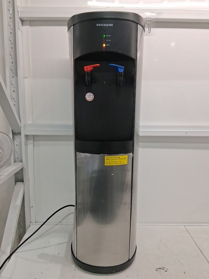 Frigidaire Stainless Steel Hot & Cold Water Cooler Dispenser with Compressor-Cooled Top-Loading Unit for 3–5 Gal Bottles, Safety-Lock Hot Tap, Adjustable Cold Temperature, Removable Drip Tray - Black/stainless steel - (MODEL: EFWC519)