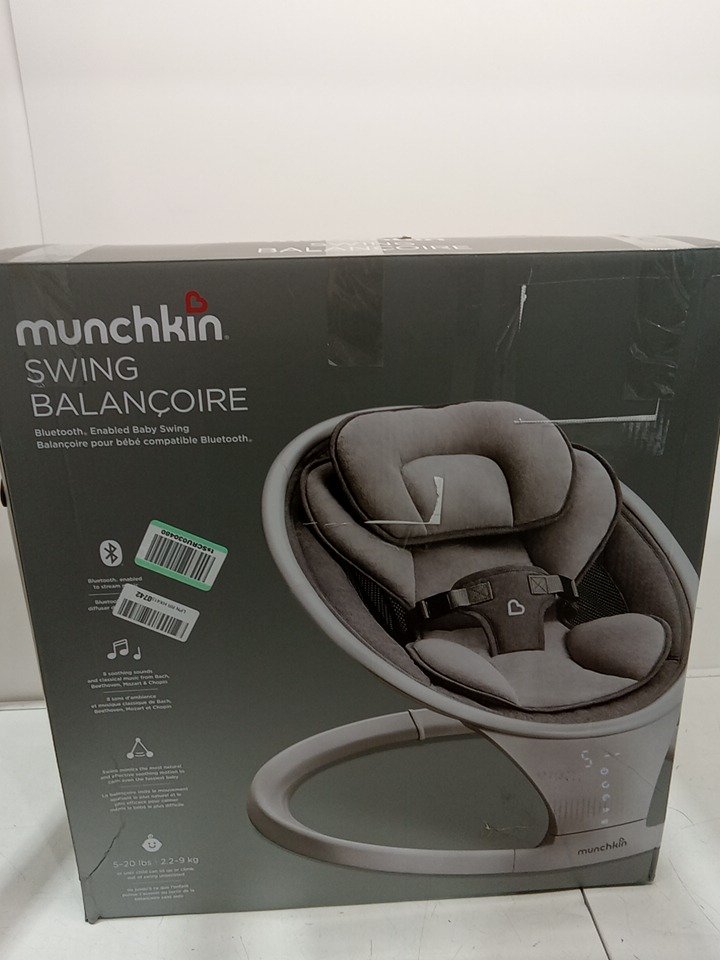 MUNCHKIN lightweight SMART bluetooth baby SWING with natural sway in 5-speed & remote - WHITE/GREY - (MODEL: MCKFB-3004)