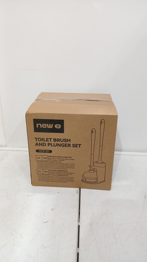 NEWE 2-in-1 HEAVY DUTY TOILET BRUSH AND PLUNGER SET WITH TWEEZERS - BLACK/WHITE (MODEL: NTP-01)