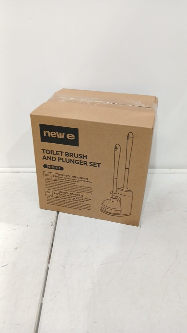 NEWE 2-in-1 HEAVY DUTY TOILET BRUSH AND PLUNGER SET WITH TWEEZERS - BLACK/WHITE (MODEL: NTP-01)