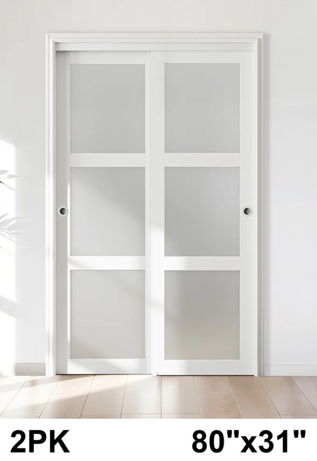 2pair Frosted Glass Sliding Closet Doors with Installation Hardware Kit - 80" x 31" - white