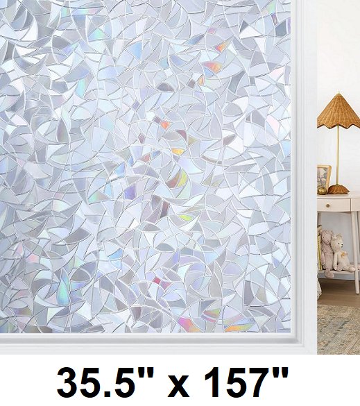 Haton Window Film, Non Adhesive Privacy Film for Glass Windows - 35.5" x 157" - Silver With Unique Irregular Pattern