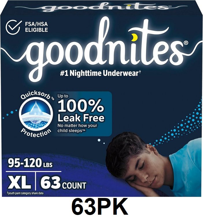 63PK BOYS GOODNITES NIGHTTIME BEDWETTING UNDERWEAR - XL (FITS SIZE 14-16)