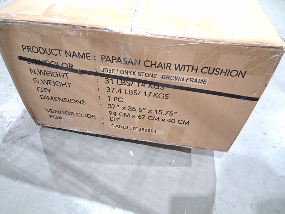 bme Ergonomic Wicker Papasan Chair with Soft Thick Cushion - 40" - onyx stone/ brown base (model: JD5F)