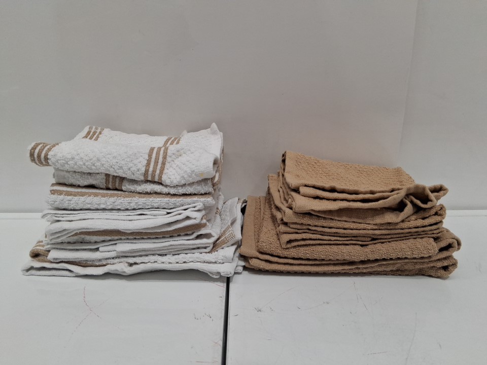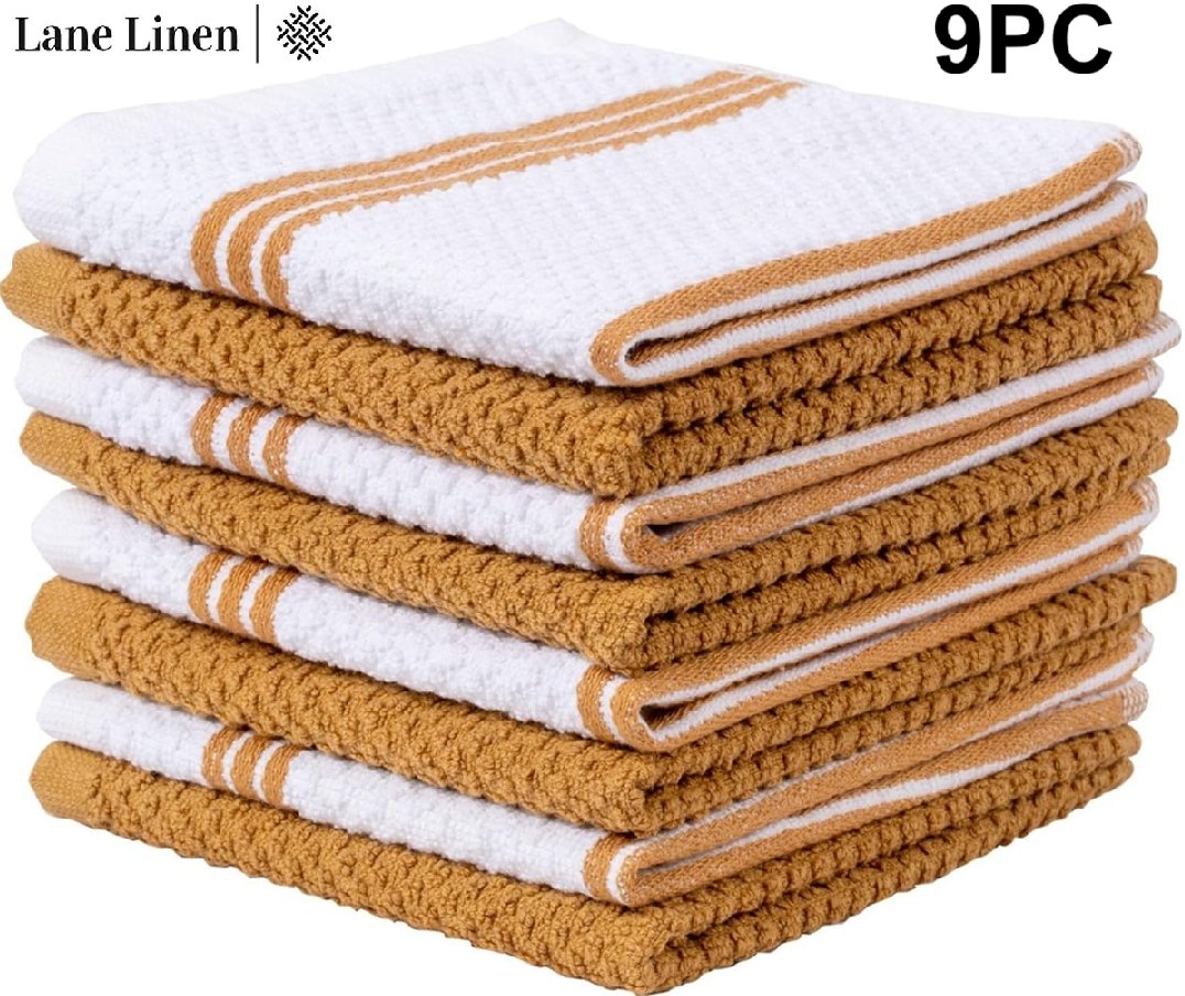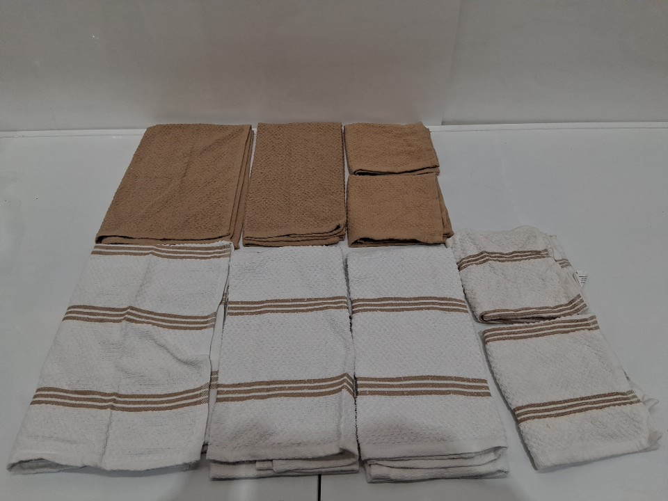 9pc lane linen 100% cotton hand/kitchen/bathroom towel set - Beige/white