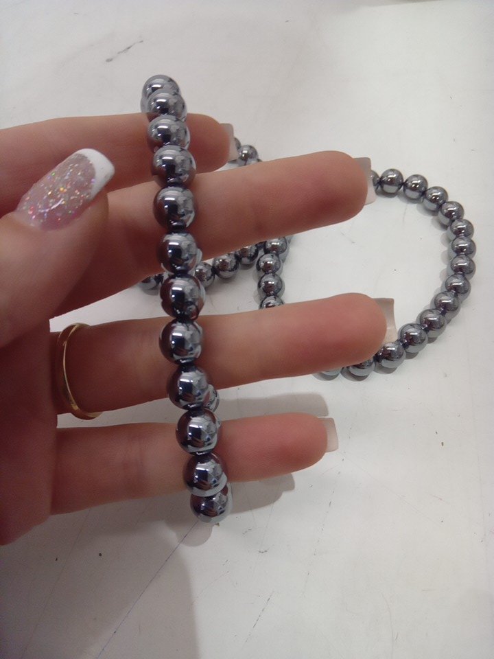 3pk unisex terahertz beaded bracelet - 25 beads in each bracelet/8mm each bead - stretchy (medium -large)