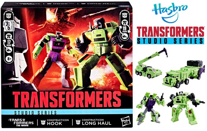 2PK HASBRO Transformers Studio Series The Transformers: The Movie Constructicon Long Haul & Constructicon Hook - GREEN/PURPLE (MODEL: G0472)