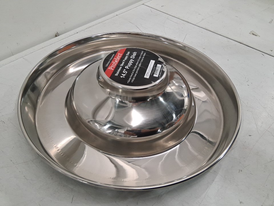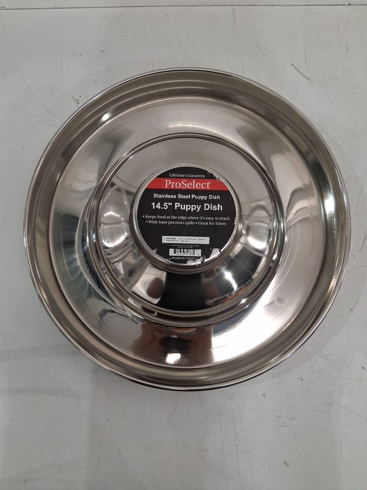 ProSelect Wide Base Stainless Steel Puppy Dish - 14.5" - Steel Silver (Model: ZW01814)