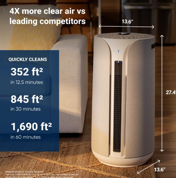 BLUEAIR ComfortPure 3-in-1 Air Purifier WITH REMOTE AND APP CONTROL - 1689 sqft in 1 Hour - grey (model: 4232412000)
