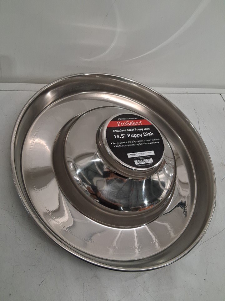 ProSelect Wide Base Stainless Steel Puppy Dish - 14.5" - Steel Silver (Model: ZW01814)