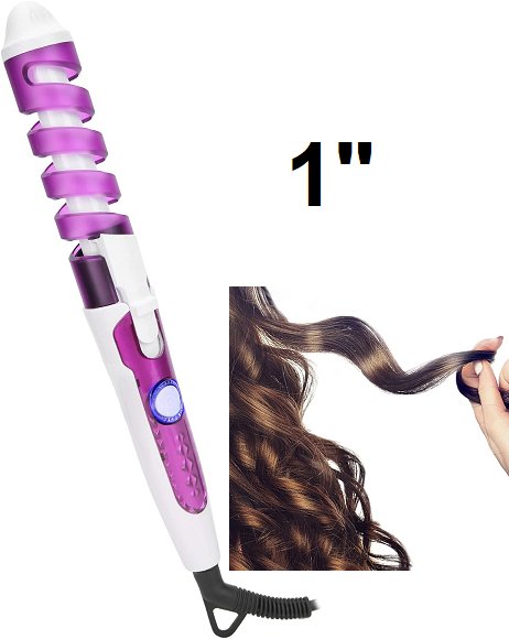 Mini Spiral Hair Curler Temperature Adjustable Curling Iron - 1" - white/purple