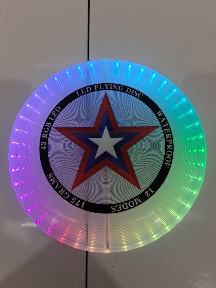 Light-up Rechargeable Flying Disc FRISBEE WITH charging cable AND 12 LIGHT MODES - 10.5" - CLEAR/RGB (MODEL: 8301)